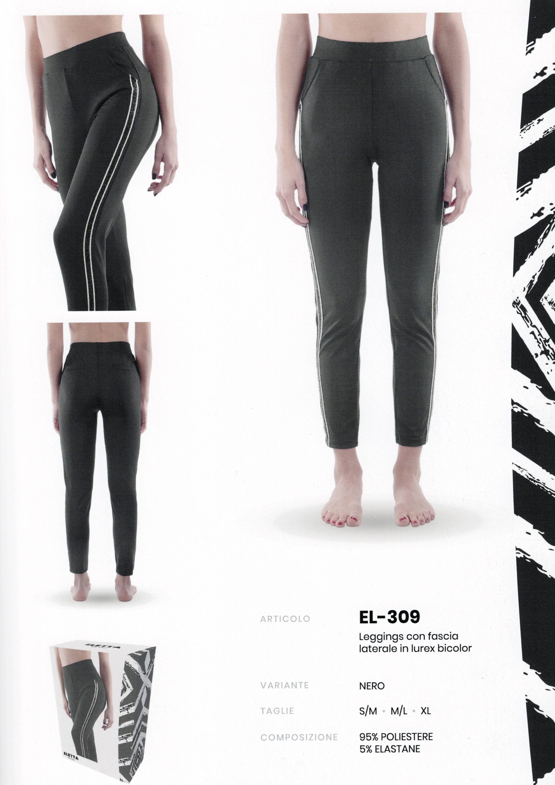 ELETTA MILANO DONNA – LEGGINGS BANDA LATERALE LUREX BICOLOR Art. EL-309