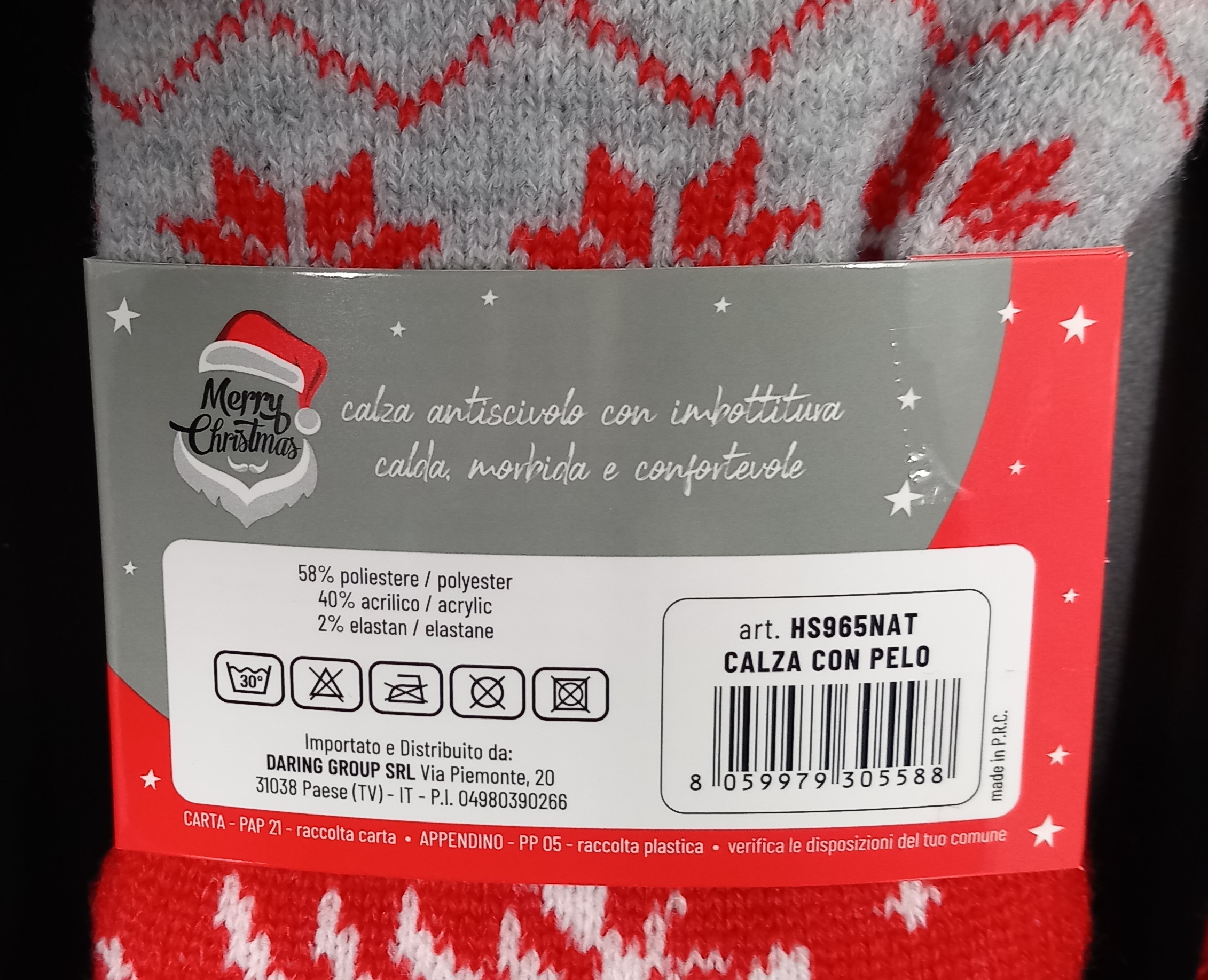 COMPOSIZIONE: 58% POLIESTERE – 40% ACRILICO – 2% ELASTAN