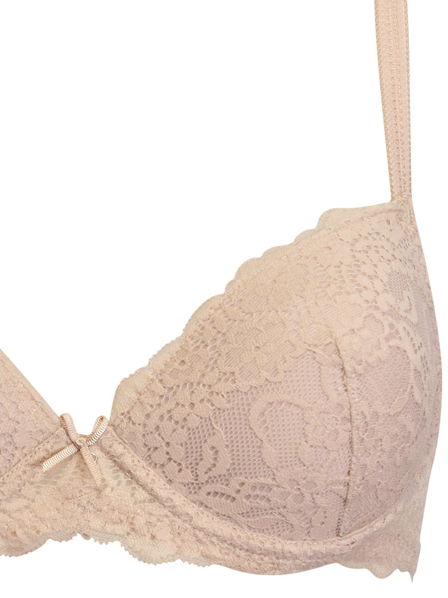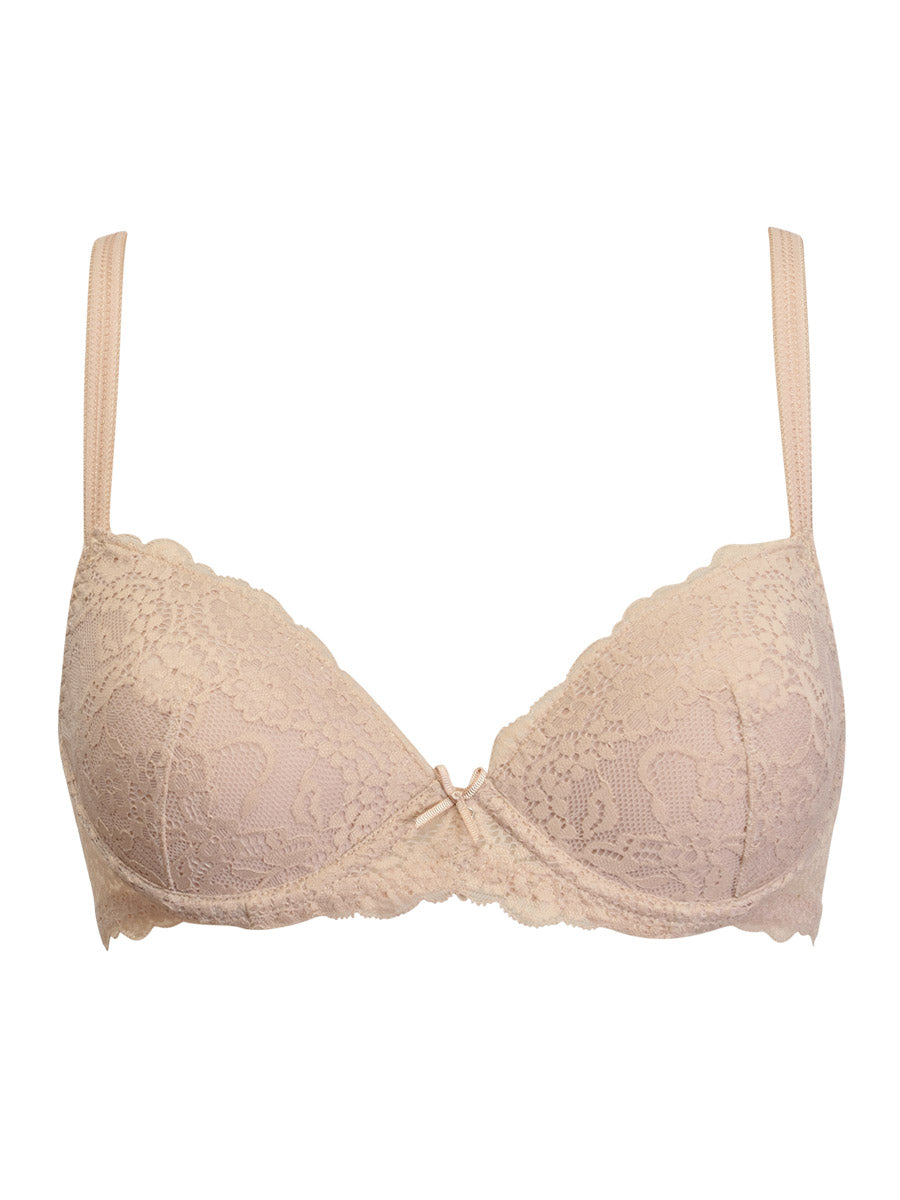 Reggiseno con “coppa Memory”, realizzata in tessuto termosensibile, che diventa ancora più morbida col calore del corpo donando morbidezza senza costrizioni o rigidità. Torace in laize di pizzo con spalline regolabili. Dettaglio a centroseno di fiocchetto di raso con gioiello e punto luce.