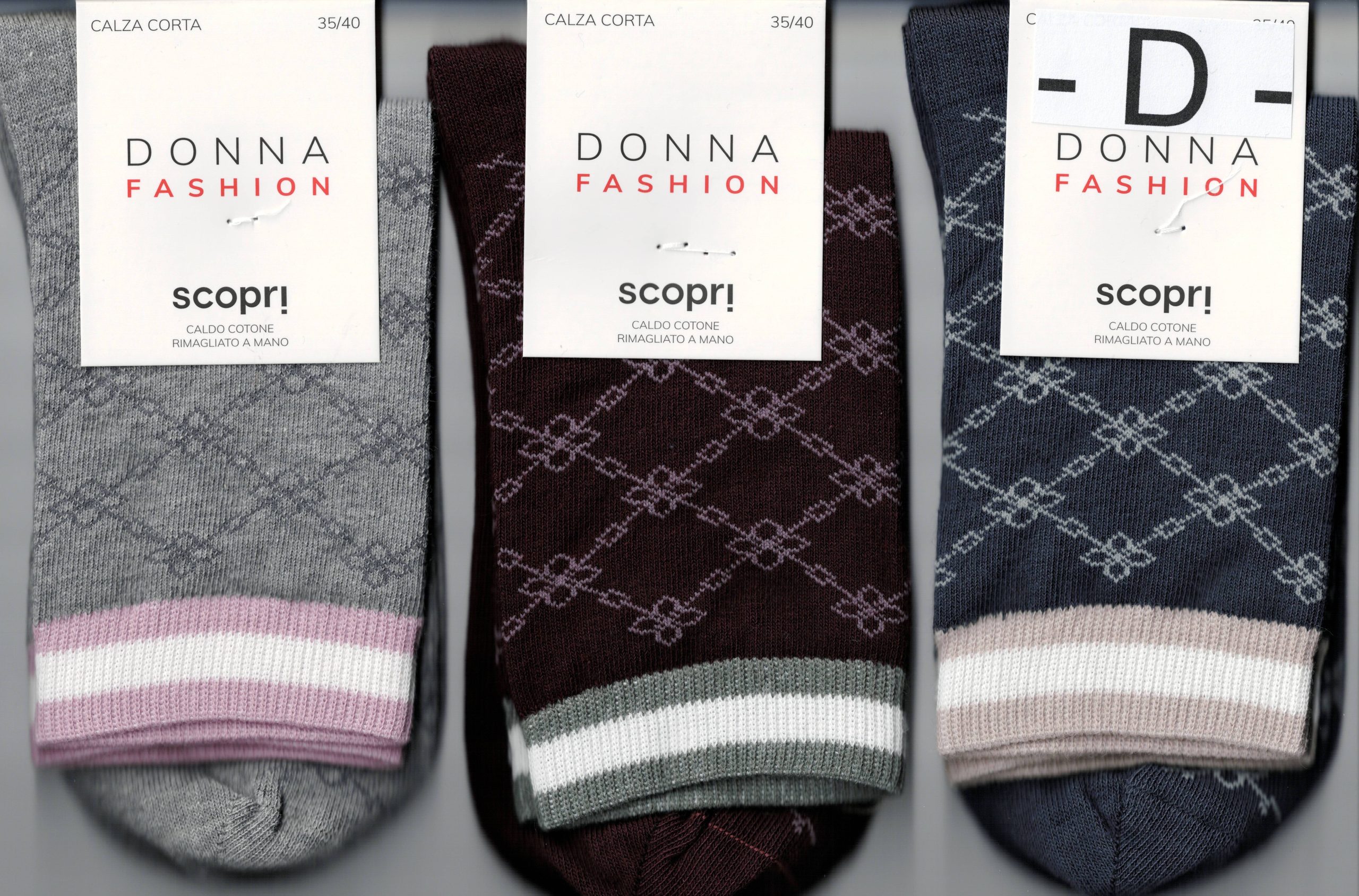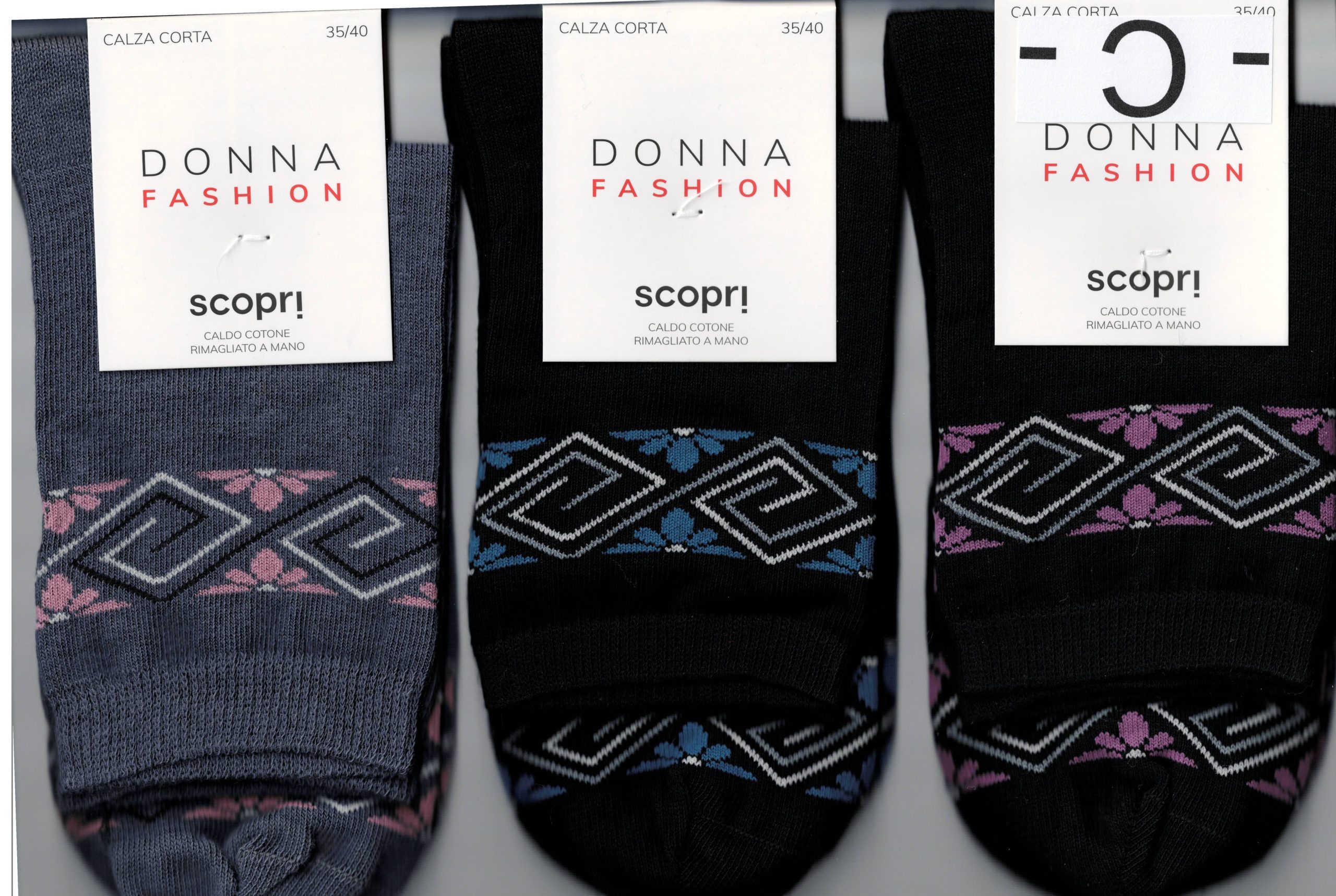 SCOPRI – DONNA CALZA CORTA CALDO COTONE ART. REGINA – Rimagliata a Mano Conf. da 3 Paia
